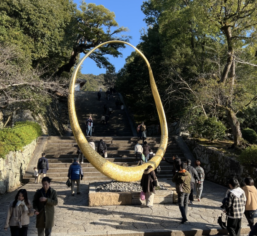 その金色の大きな輪のオブジェ、歴史ある知恩院の風景の中でひときわ目を引きますよね!