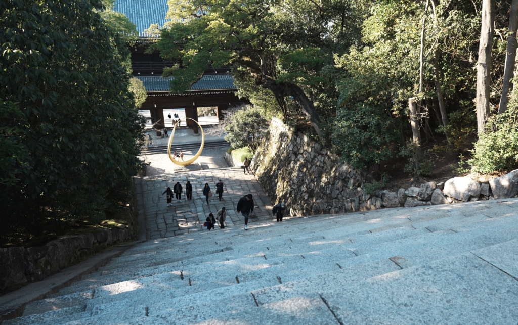 これは、知恩院の三門から本堂(御影堂)へ続く階段に設置されているアート作品で、ごく最近登場したものです。