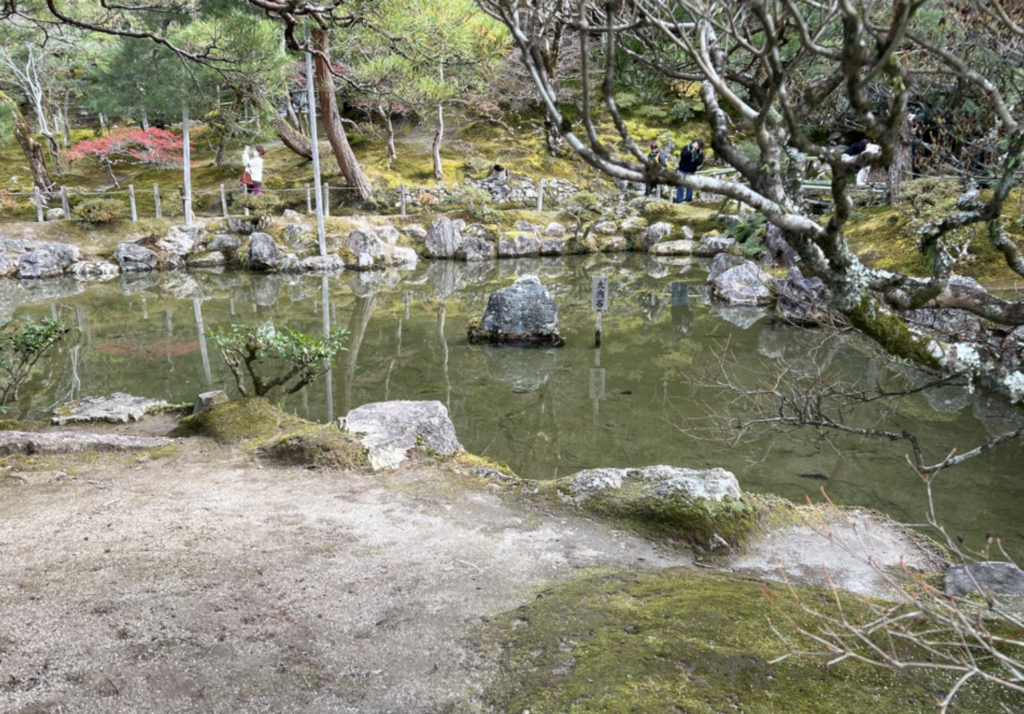 銀閣寺の池の中でも、名前の札が立てられている石は限られています。